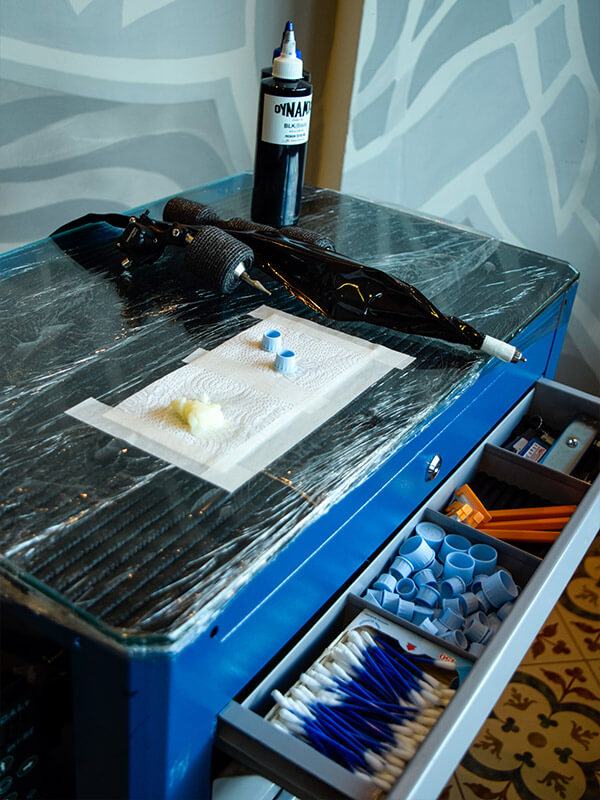 Tattoo boa começa na preparação — Sem improviso: higiene, proteção, montagem correta e condução responsável da sessão.